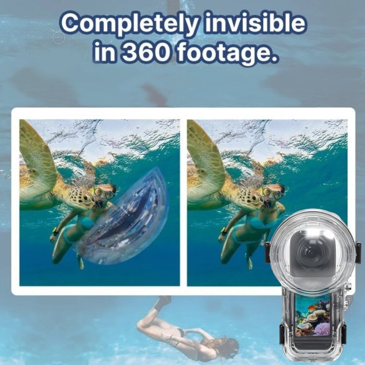 - The waterproof case design ensures that the bottom of the case remains invisible in both 360-degree videos and photos