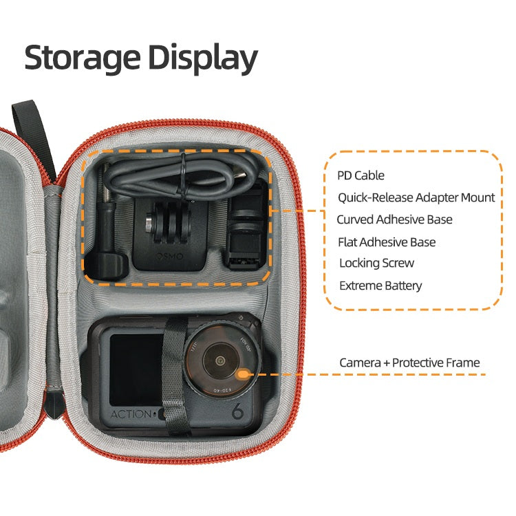 The Compact Carry for Osmo Action 6 has been specifically designed to make travel easier. The case allows for the camera and a few core accessories to be stored and secure for traveling. Having the camera carry case gives you even more access to capturing the perfect video or photo on the go!