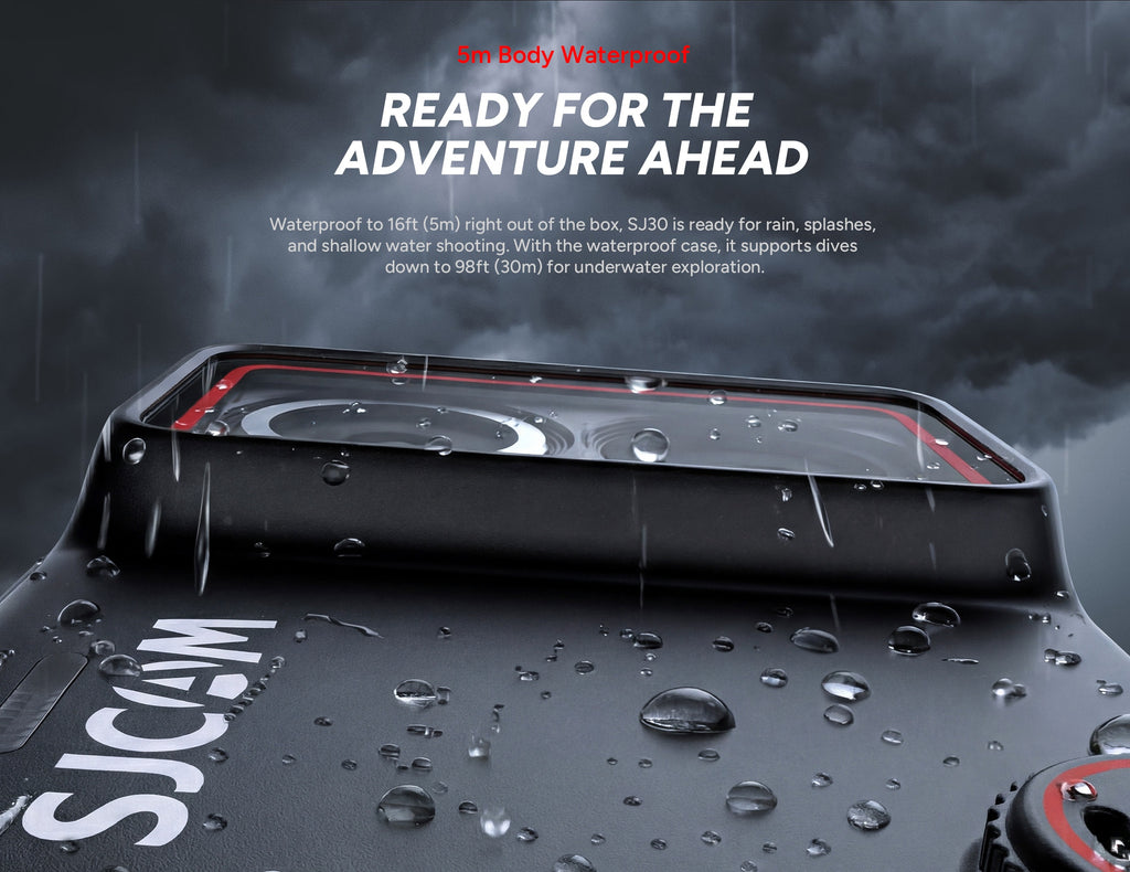 - 【5M BODY WATERPROOF】 Built to withstand the elements, the SJ30 is waterproof up to 5 meters without a case. For deep-sea adventures, the included waterproof housing protects your camera up to 40 meters.
