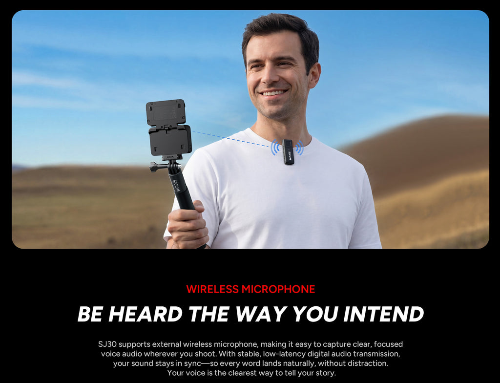 - Microphone Compatibility: Supports SJCAM M4 Wireless Microphone