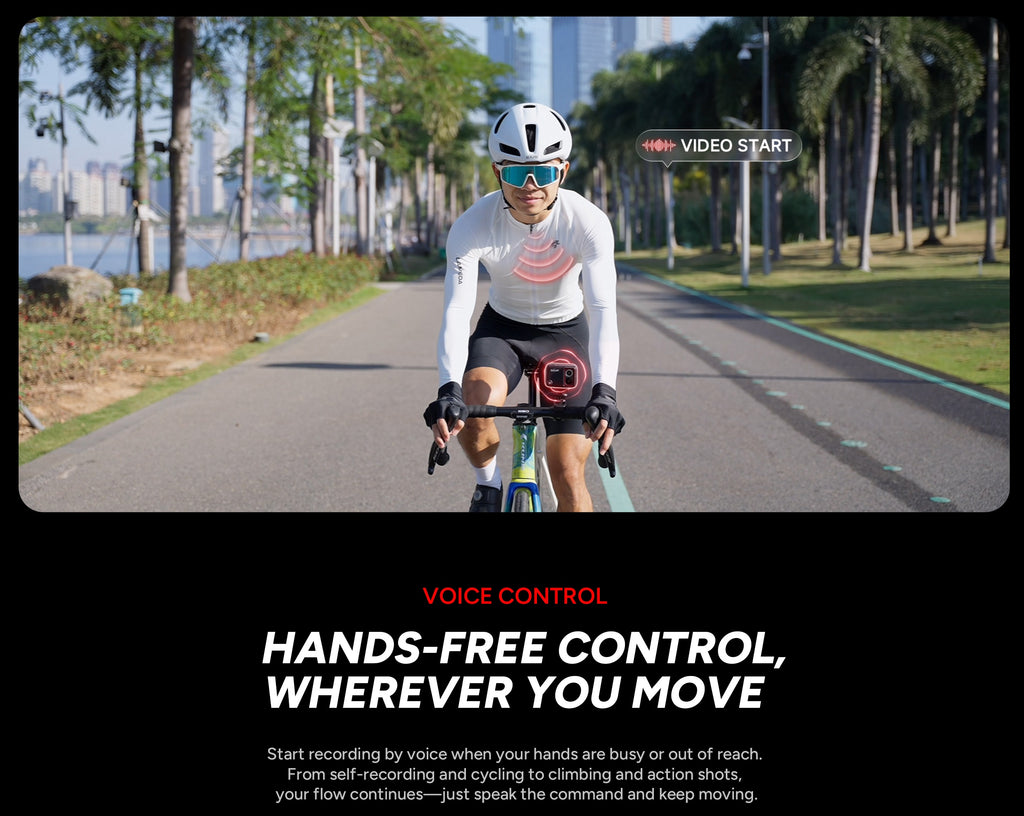 - 【INTUITIVE VOICE CONTROL】 Keep your hands on the action. Command your camera to start recording or take a photo using simple voice prompts, ideal for biking, climbing, or skiing.