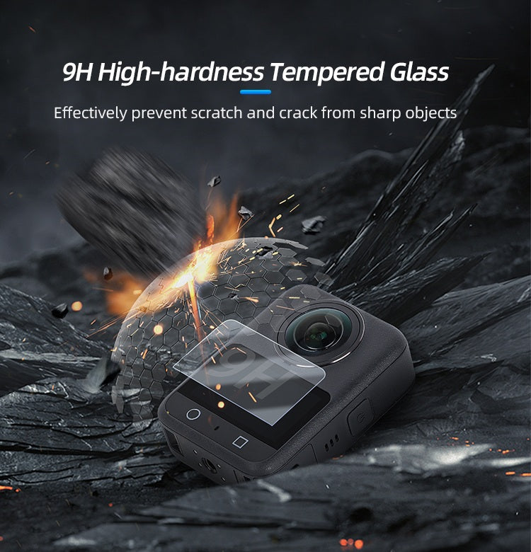 The screen protector for GoPro MAX 2 provides an extra layer of protective film to your device to protect from scratches. The protective film provides 9H super hardness protection that is explosion-proof and shock-proof. It has been designed to effectively prevent scratches and cracks from drops and sharp objects all while keeping the high definition and transmittance to the camera screen.