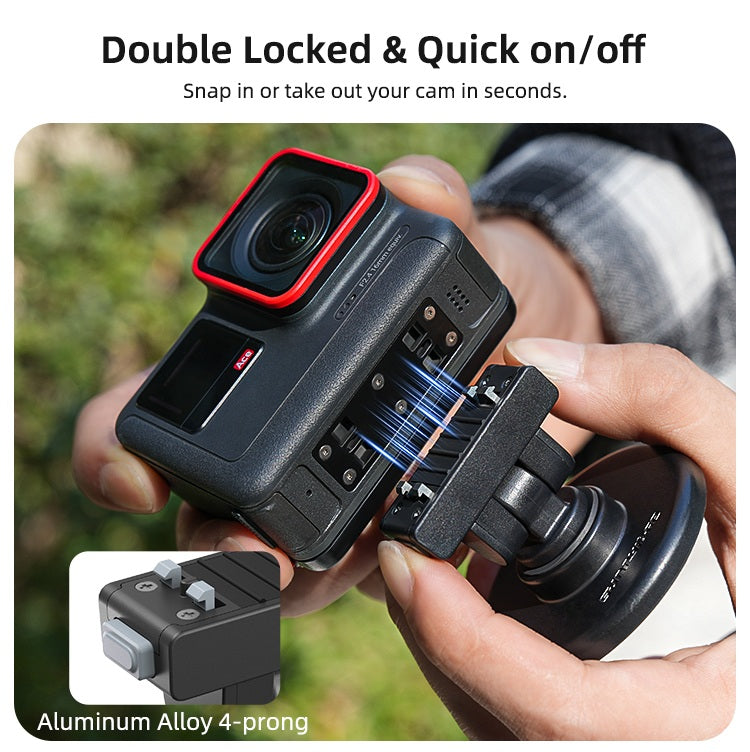 - 【Quick Release Magnetic Lock】Strong built-in magnetic base provides instant, secure attachment to Insta360 X5 / X4 Air / Ace Pro 2 1 cameras. Enables fast, tool-free mounting and removal for effortless shooting on the go.