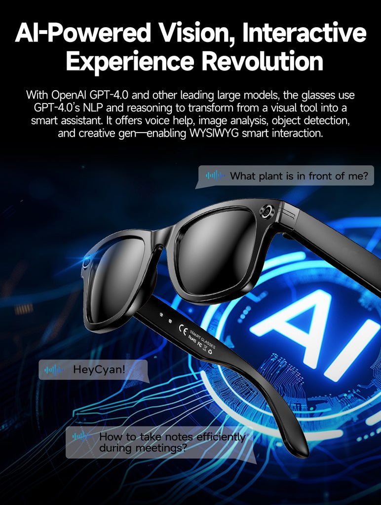 - 【AI Object Recognition】Identify objects around you and receive instant answers, turning your glasses into a smart personal assistant.