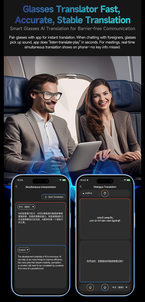 - 【Real-Time AI Translation】Instantly translate foreign languages, perfect for travel, meetings, and learning.