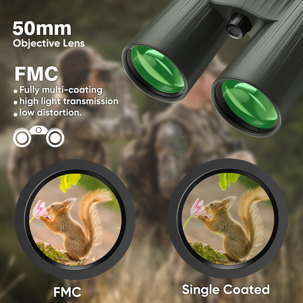 - 【Durable Full Aluminum Body】Crafted from aluminum, these 12x50 binoculars are built to withstand the demands of outdoor use. Scratch and drop resistant, they’re ideal for hiking, birdwatching, camping, stargazing and much more, delivering long lasting performance in any environment.