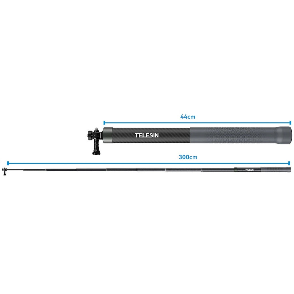The 3 Meter Carbon Phone Fibre Selfie Stick (3rd Generation) has 8 adjustable lengths that extends out to a 300cm reach. The device has been made from carbon fibre which makes it strong and lightweight as well as guaranteeing stability when filming at all distances. The device provides the user with a great range of angles & distances to see the world from a different view. It compacts to 44cm in length which makes it a manageable & convenient accessory to travel with. This selfie stick gives you the ability to capture the perfect video or picture in all environments!