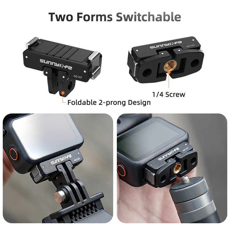 - The adapter features a 1/4" screw hole on the base, enabling compatibility with various universal accessories possessing a 1/4" screw thread