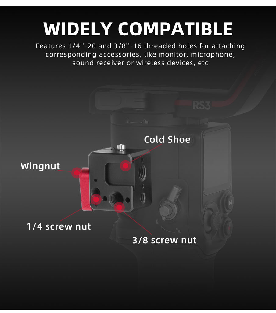 - Compatible with gimbal models: RS 5 / RS 4 / RS 4 Pro / RS 3 / RS 3 Pro / RS 3 Mini / RS 2 / RSC 2 / Ronin-S / Ronin-SC