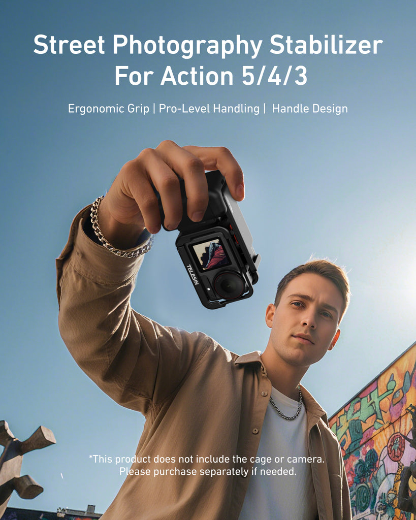 The Street Grip for Osmo Action 5 Pro / Osmo Action 4 / Osmo Action 3 is designed for capturing stunning footage in dynamic urban environments, from bustling streets to city sports. Crafted from lightweight durable material, it provides robust protection while offering flexible shooting angles with its ergonomic free angle grip. A cold shoe mount, a magnetic quick-mount system, and an open-frame design ensure you can easily attach accessories and access your SD card or battery for uninterrupted shooting.